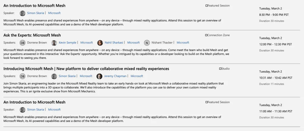 Vanochtend bracht Microsoft het grootste deel van de Ignite 2021-keynote door met de onthulling van Microsoft Mesh, het nieuwe Virtual Reality-platform dat HoloLens en virtual reality naar een geheel nieuw niveau tilt. Nu, nadat de aankondigingen voorbij zijn, heeft Microsoft een reeks nieuwe sessies op Ignite uitgebracht, allemaal gepland voor vandaag, dinsdag 2 maart.