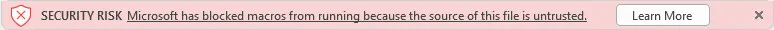 Hackers richten zich al jaren op Office-documenten met kwaadaardige macro’s, en hoewel Office gebruikers al lang heeft gevraagd om te klikken om macro’s uit te schakelen, kan deze eenvoudige knop leiden tot “ernstige malware, gecompromitteerde identiteit, gegevensverlies en externe toegang.” In plaats van een knop wordt een banner voor beveiligingsrisico’s weergegeven met een koppeling naar een Microsoft-ondersteuningsartikel, maar geen eenvoudige manier om macro’s in te schakelen.