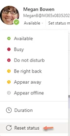 - Wist u dat als u uw status handmatig wijzigt en terugkeert naar uw bureau, u deze opnieuw moet instellen? Selecteer “reset status” in de statusbalk om ervoor te zorgen dat uw profiel de juiste beschikbaarheid weergeeft.