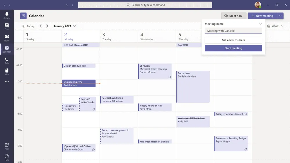 Get an easily shared meeting link from the calendar