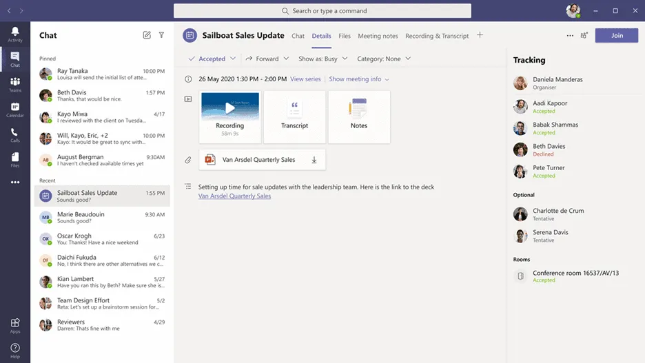 Users can now copy a meeting link from the Calendar tab and share it with others without starting the meeting. If you’re on an email, chat, or channel conversation and you’ve agreed to meet at a specific time, this is an easy way to copy and paste a meeting link into the conversation.