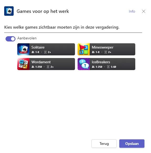If you want to try these games, you should download the Games for Work app from the Teams marketplace. The app is only available if you have a work or school account, so it does not work with personal Teams accounts.