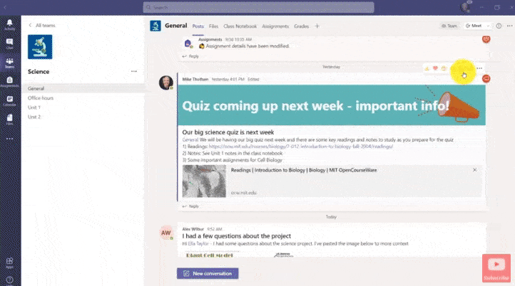 Prior to this update, it was a challenge for users to keep track of important announcements, especially when hundreds of people participated in a discussion. The pinned messaging feature is useful for both teachers and team owners, making it easier for them to keep important information easily accessible to everyone.
