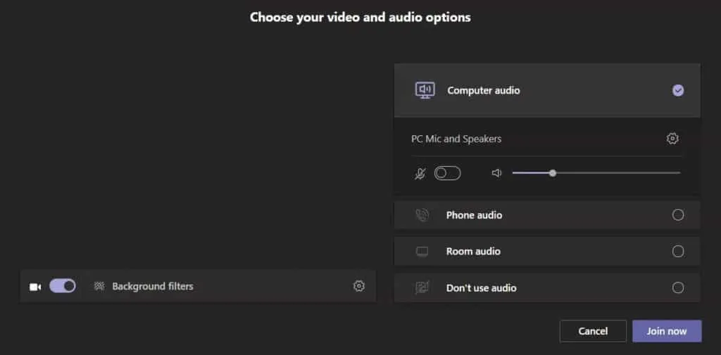 In the new experience, you can verify your audio and video devices before you go to the meeting. This helps you prevent your hardware from not working properly during a live meeting. Of course, you can always change the settings after you join the meeting.