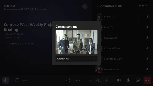This new feature allows users in the room to switch between multiple video cameras from the console in Teams rooms on Windows. For rooms with more than one video camera connected to MTR, users can switch between these cameras during a Teams meeting by selecting a camera from the list of available cameras.