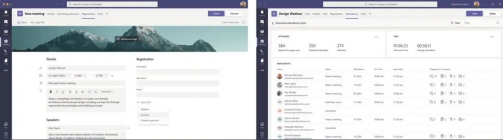 Later this year, Teams will support the registration and reporting of webinars. This feature allows organizers to use event registration with (automated) reminder emails before an event starts and view detailed analysis after the webinar.