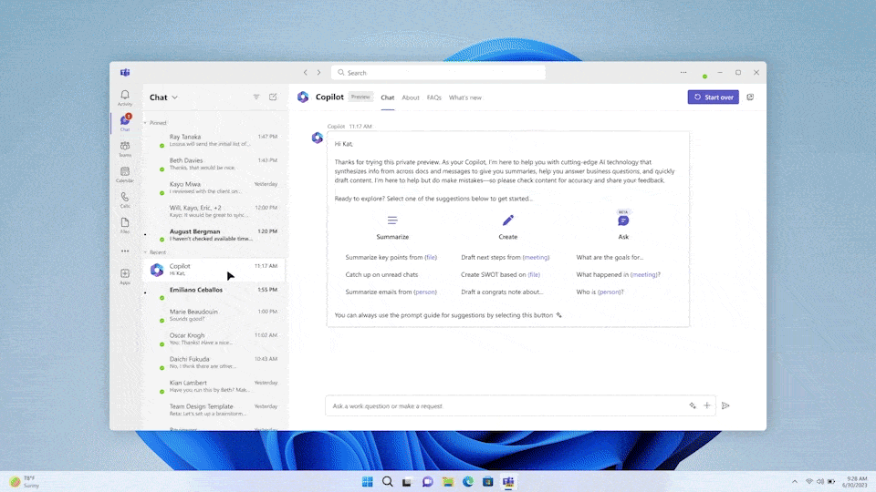 In addition, Copilot will be integrated into Whiteboard, Microsoft 365’s digital canvas app for brainstorming sessions. Users can call Copilot to generate ideas on specific topics and summarize whiteboard content. Copilot can also use Microsoft’s new graphic design tool, Microsoft Designer, to visualize these ideas by generating images based on the idea prompts created on the whiteboard.