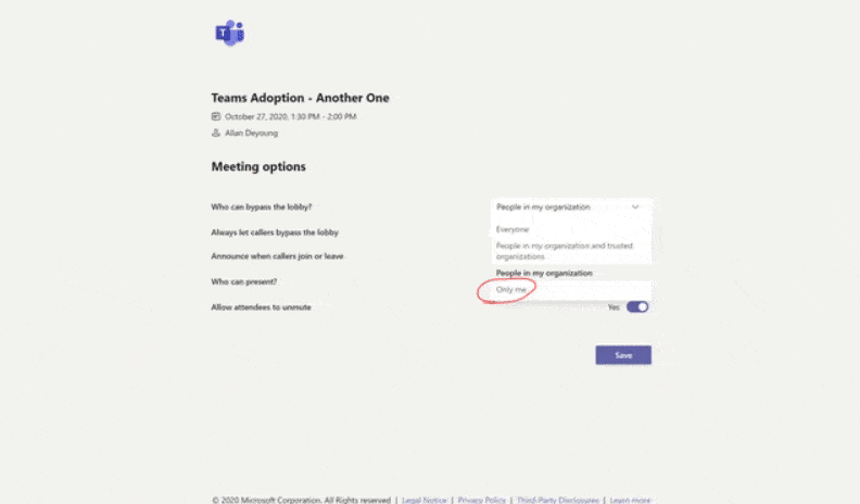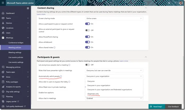 New setting for Microsoft Teams meetings ‘Only the organizer can bypass the lobby’