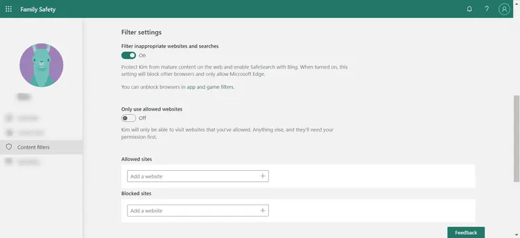 5. You can also enable the filter settings and enable the setting to use only allowed websites. You can also add which websites they are not allowed to visit and which sites they can only access.