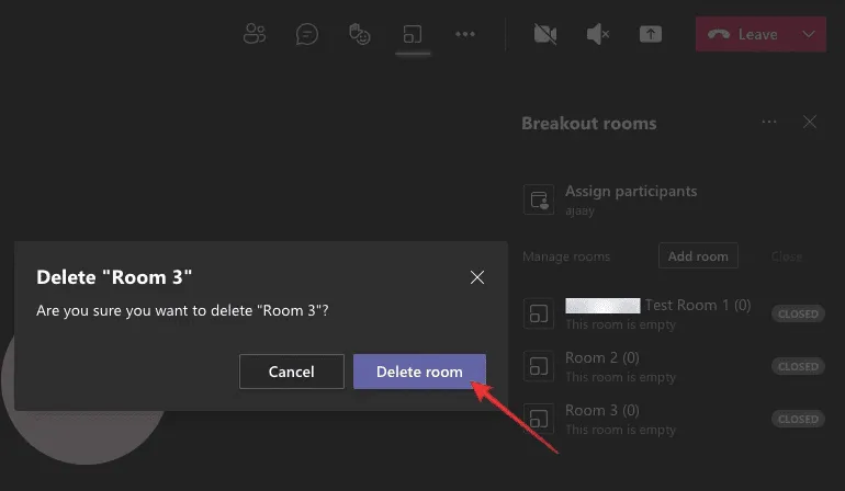 In the prompt that appears next, select the ‘Delete room’ button again to confirm your choice.