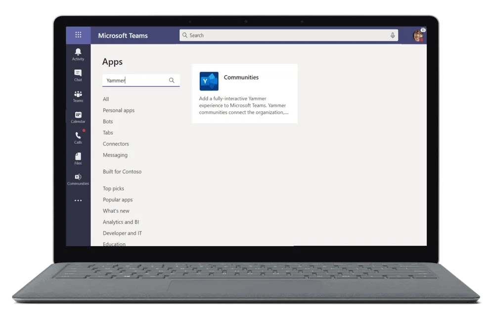 Install the Community app, powered by Yammer, from the app store in Microsoft Teams.